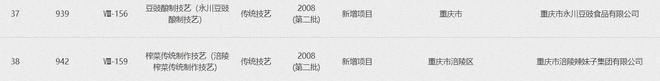 其一是豆豉酿制技艺(永川豆豉酿制技艺),其二是榨菜传统制作技艺(涪陵榨菜传统制作技艺)。