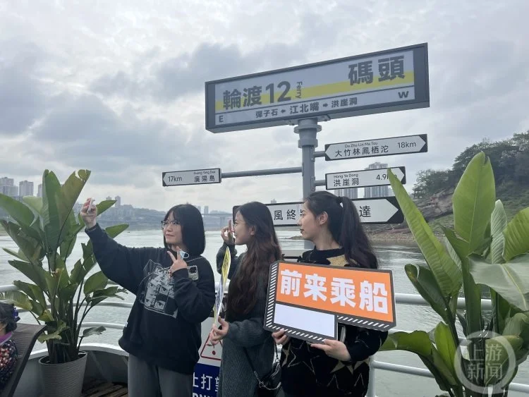 9:30,虽然离开船时间还有50分钟,不少游客已早早来到码头,等待登船。船上设立了多个打卡拍照点,供游客拍照留恋。