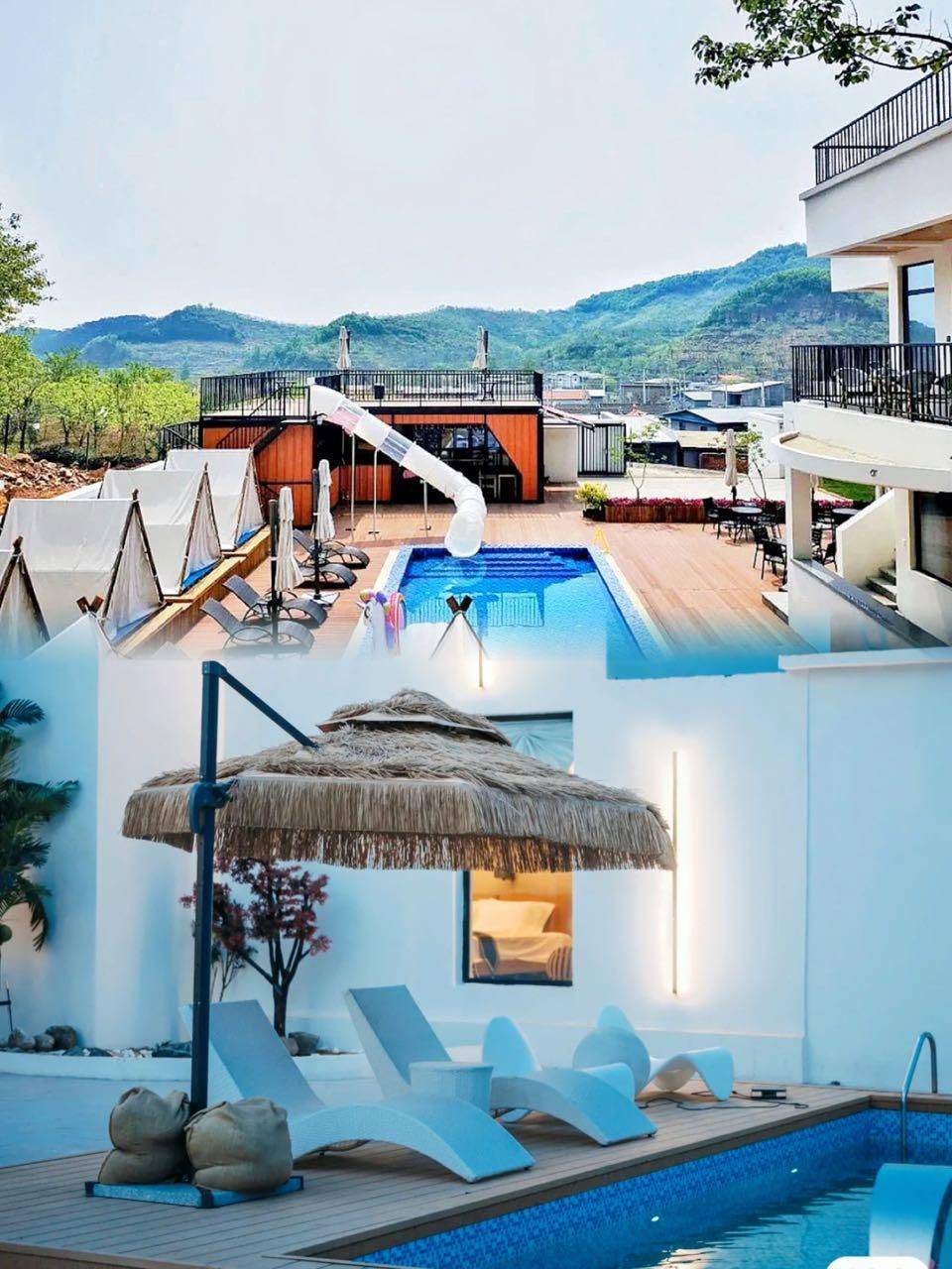 🟣小院里露天的游泳池坐落中央,水枪大战🔫➕泳池派对蹦迪👯➕游泳🏊🏻