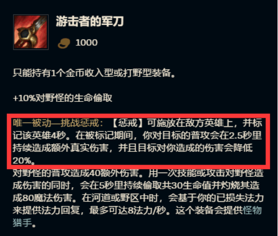 *只有携带惩戒技能的角色才能购买打野刀,因此如果你准备玩打野位置,惩戒是必须的。