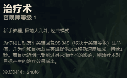 *幽灵疾步冷却时间非常短,是除惩戒外冷却时间最短的召唤师技能之一2)治疗术