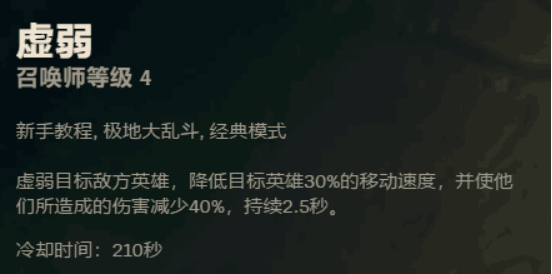 *虚弱是一个优秀的单挑技能,尤其是对面是依赖技能爆发的英雄的时候,虚弱可以轻松扭转一次战斗的结局
