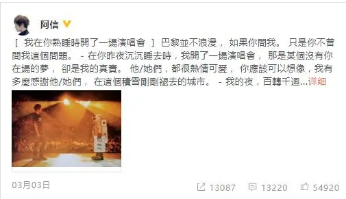阿信微博截图