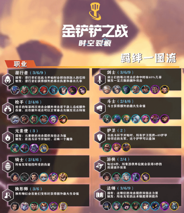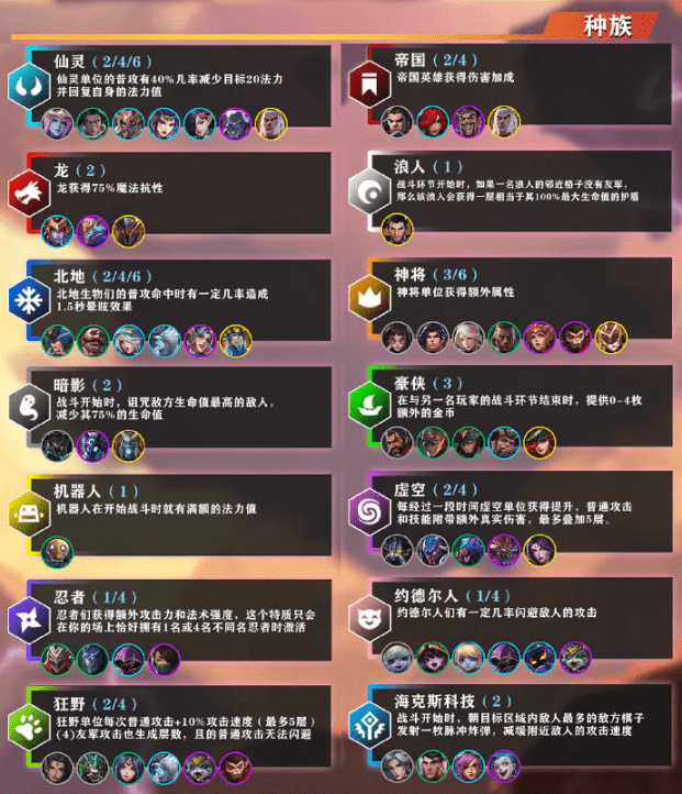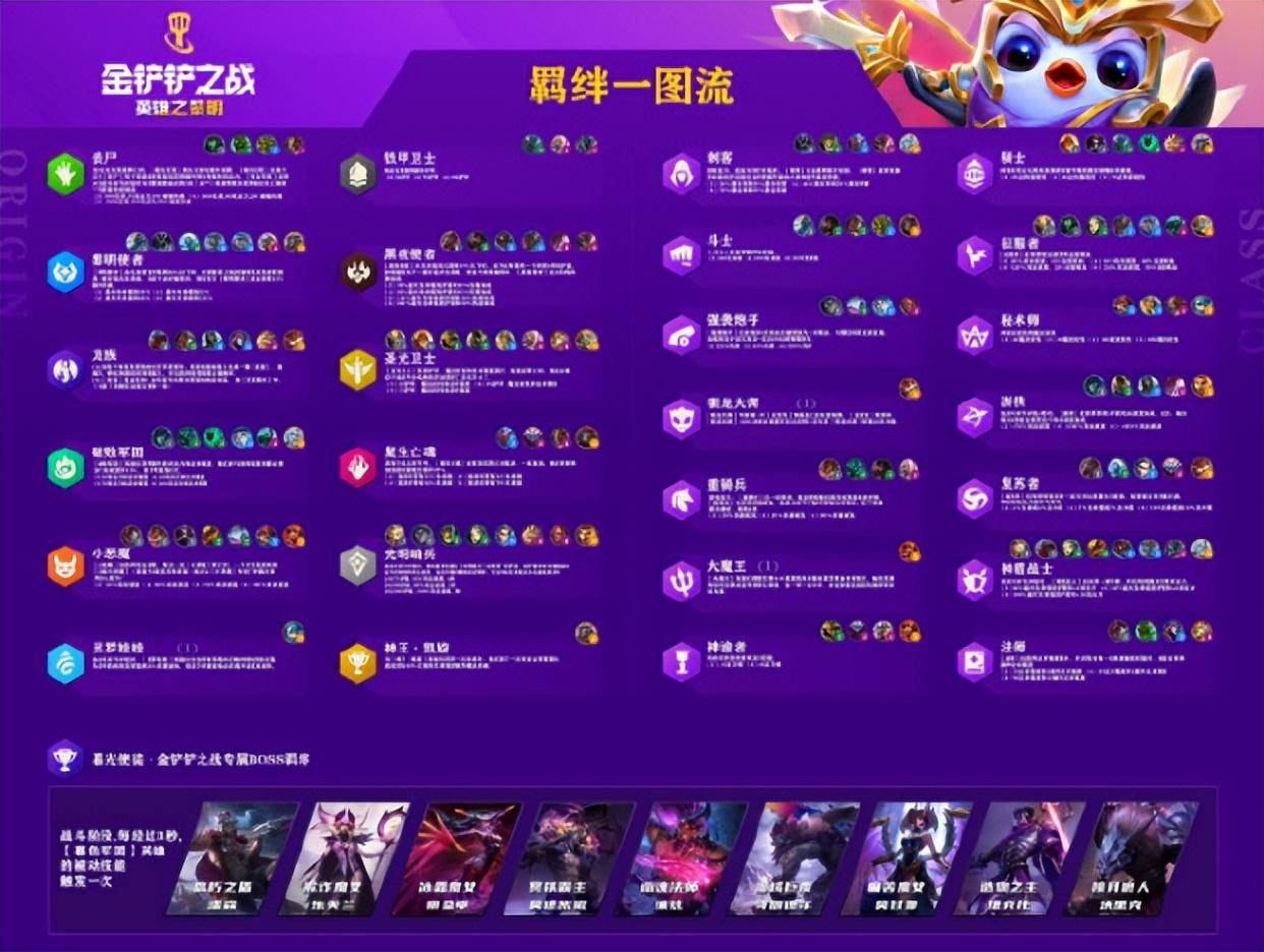 羁绊是这个游戏最重要的东西,它可以让拥有相同羁绊的英雄同时上场时获得一些增益效果(详细可以看后面列出的一图流),甚至是改变英雄的玩法。