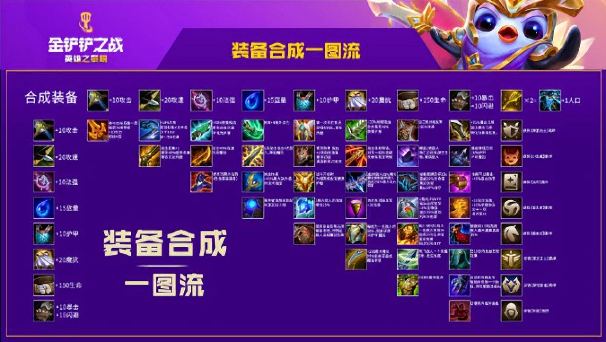 另外值得一提的,就是游戏中的“金铲铲”装备啦~这个可以说是一个“万能”装备。两件“金铲铲”可以为我们合成“自然之力”增加人口,而一件“金铲铲”+其他小件装备,则可以助力我们的棋子额外获得一个“羁绊属性”。(有些特殊的羁绊需要额外的金铲子合成,例如9剑士,需要两个金铲子合成剑士转职来凑成,因为是无法通过拥有英雄来凑足9个剑士的)