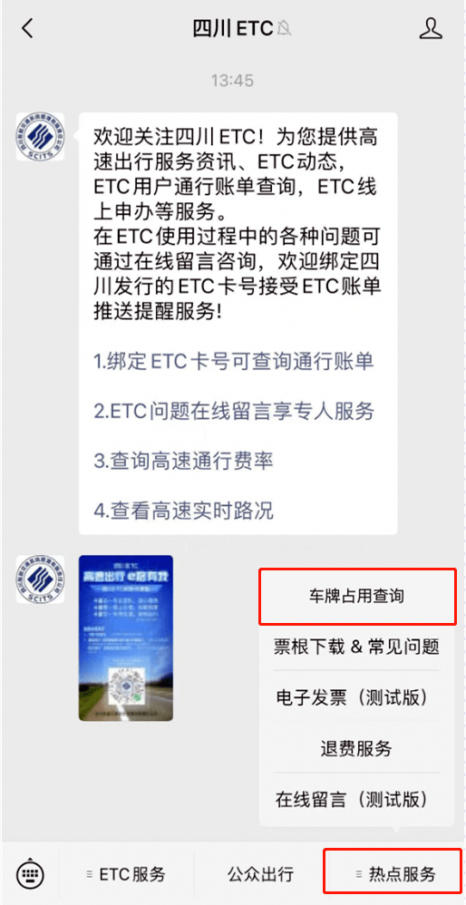 通过微信公众号【 四川ETC】——【 热点服务】——【 在线留言(测试版)】——【 车牌占用】——根据提示准确填写车辆相关信息。