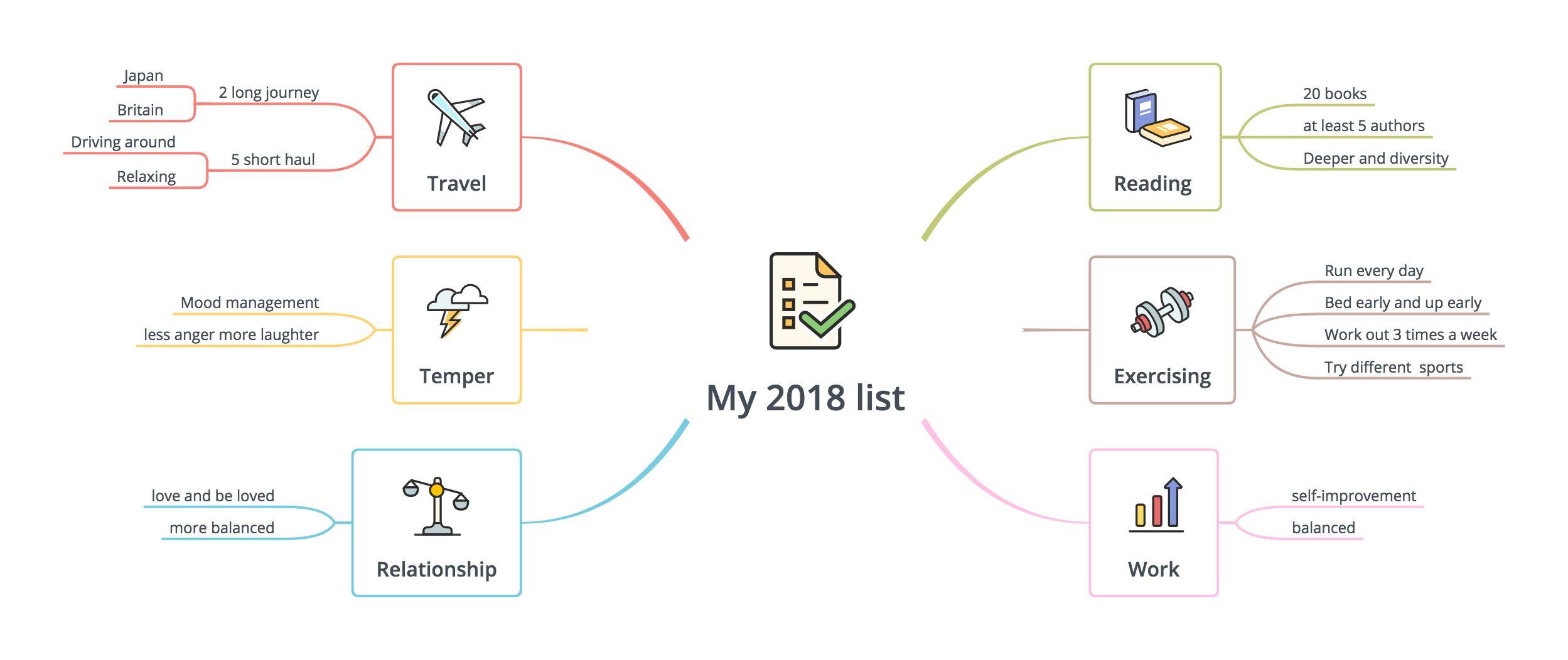 逻辑结构尽量清晰思维导图的一个最大的作用是帮助我们理清混乱无序的大脑,让我们脑袋中混乱的思绪都能够找到自己的位置。清晰的结构不仅能逼迫你去思考去理清思路,而且能让你的图更加易懂。