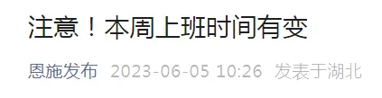 6月5日,“恩施发布”发布“恩施市人民政府关于2023年高考期间实行错峰上班的通告”,全文如下: