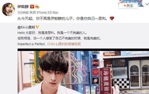 此前“哈利女装”上热搜后,伊能静写道:“你支持我们做自己,因为你不仅是母/子,也是你自己。”