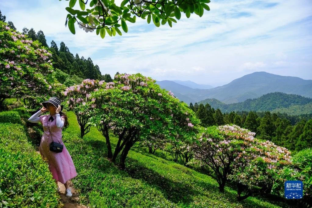 5月16日,在浙江省台州市天台县天台山华顶国家森林公园拍摄的云顶杜鹃。徐霞客在游记中写道:“琪花玉树,玲珑弥望。”