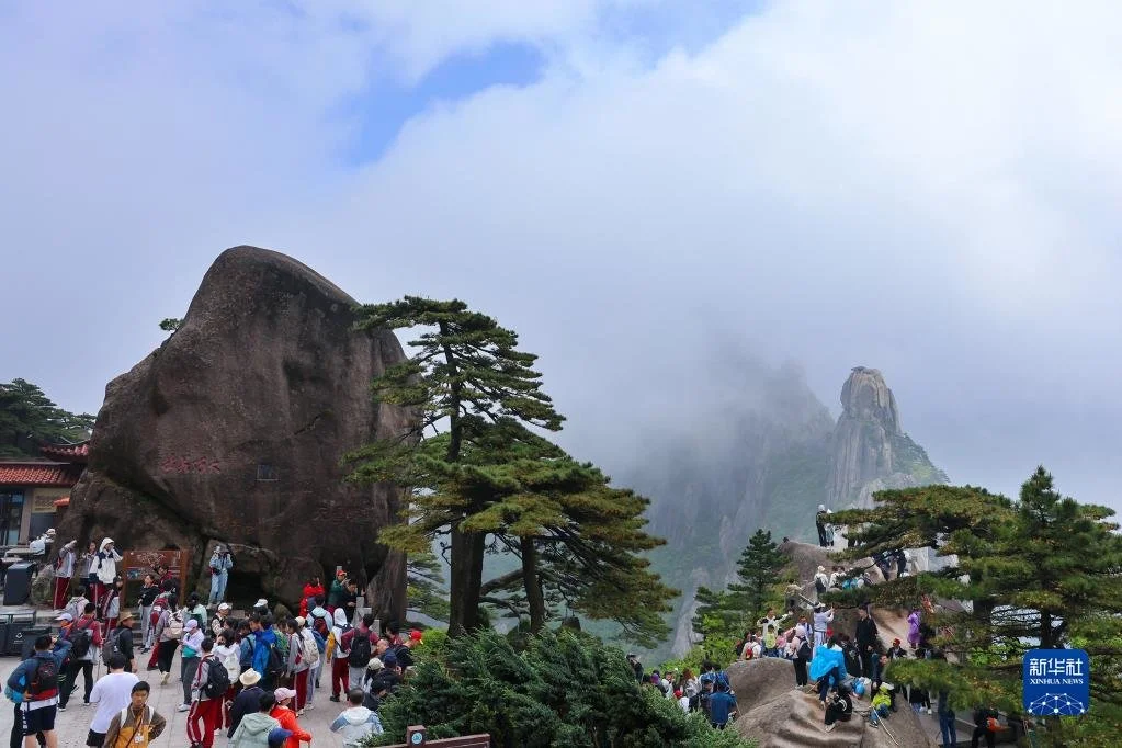 5月18日,游客在安徽黄山风景区玉屏景区游览。