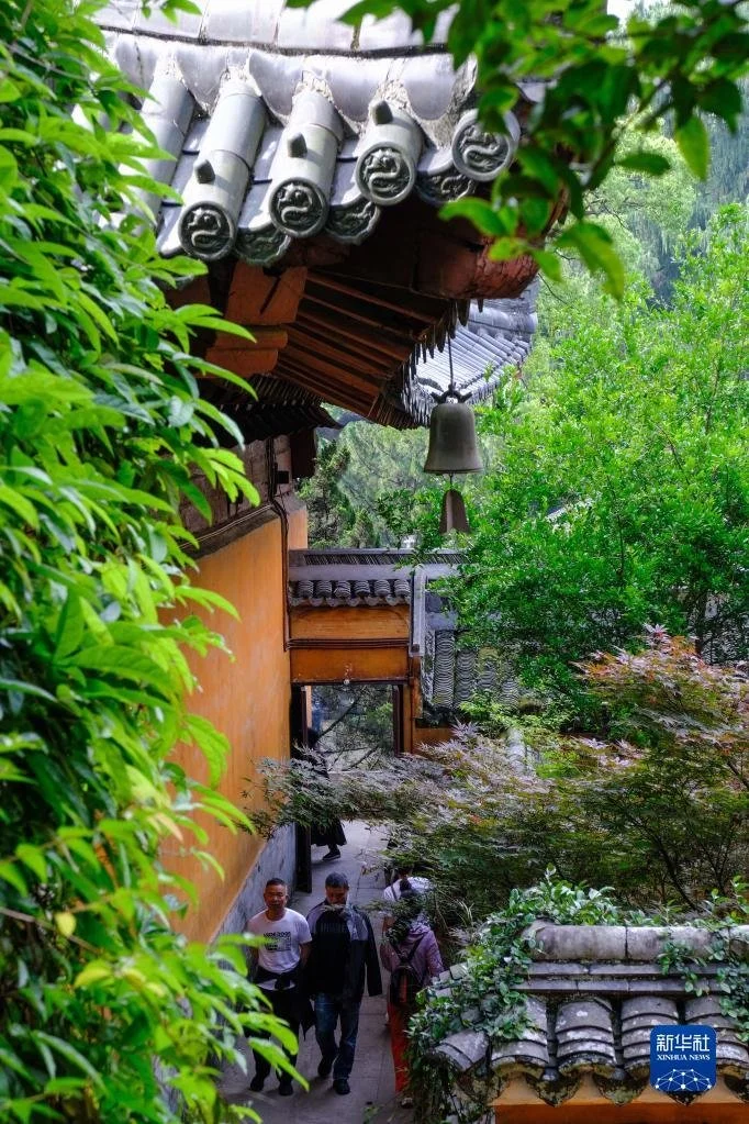 5月16日,游客在浙江省台州市天台县国清寺参观。