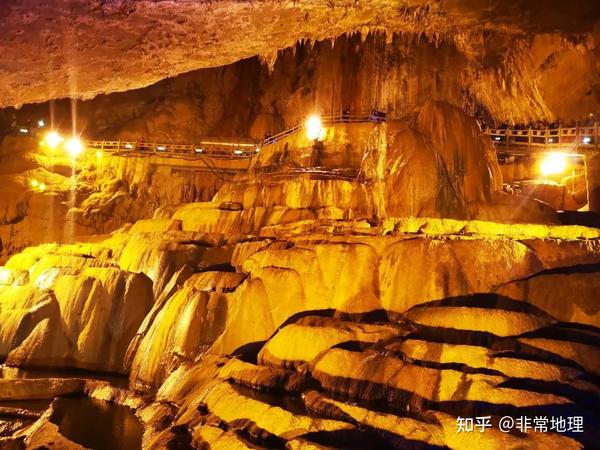 宜良九乡溶洞我国的溶洞规模很大,如桂林七星岩长千余米,高数十米。多个溶洞连通组合成一个整体时,可称为洞穴系统。