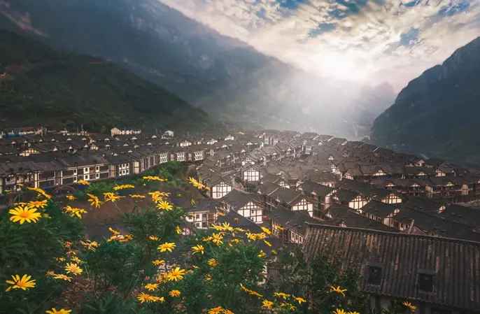 DAY 1:白马山天尺情缘景区—→羊角古镇—→懒坝国际禅境艺术度假区