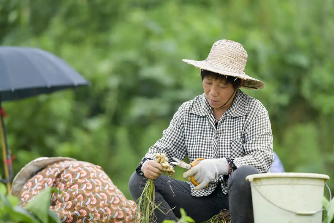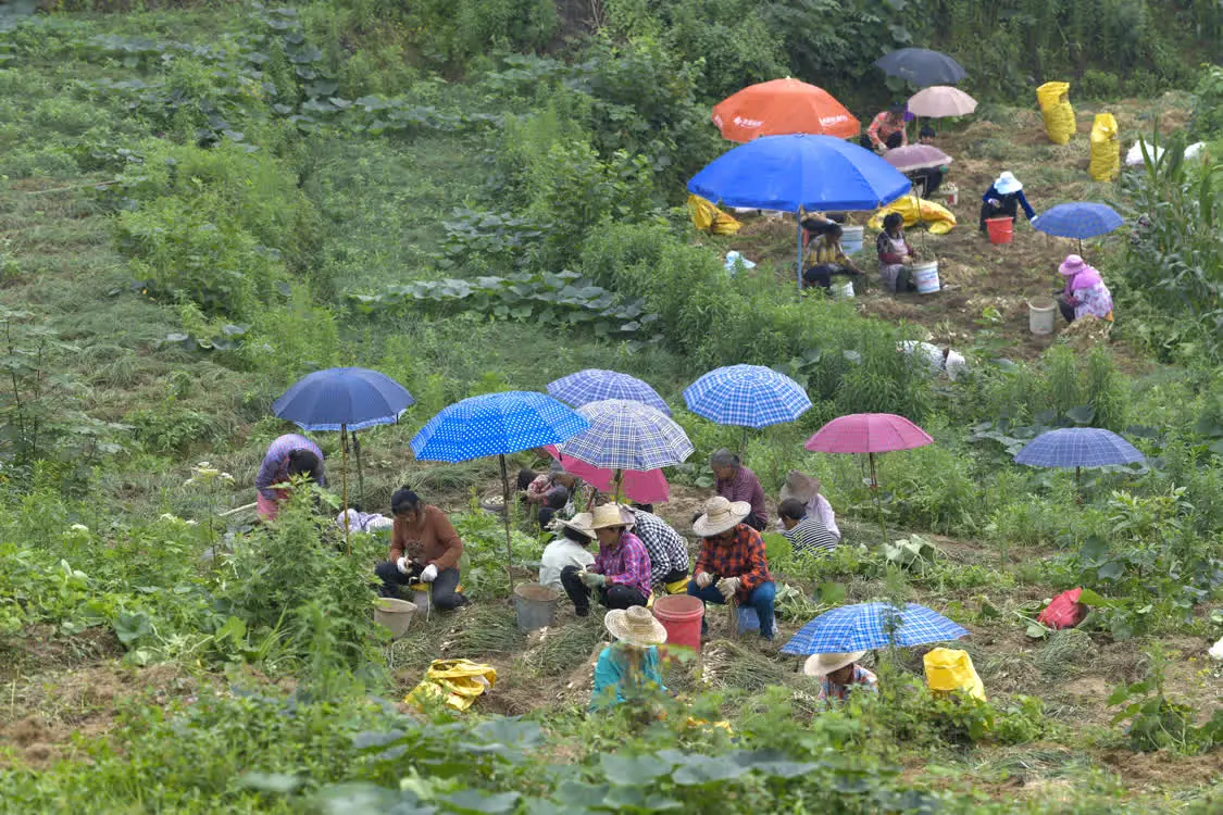 6月8日,在丰都县虎威镇大池社区的藠头田,当地村民在种植大户的组织下集体采收藠头。 新华社记者 刘潺 摄