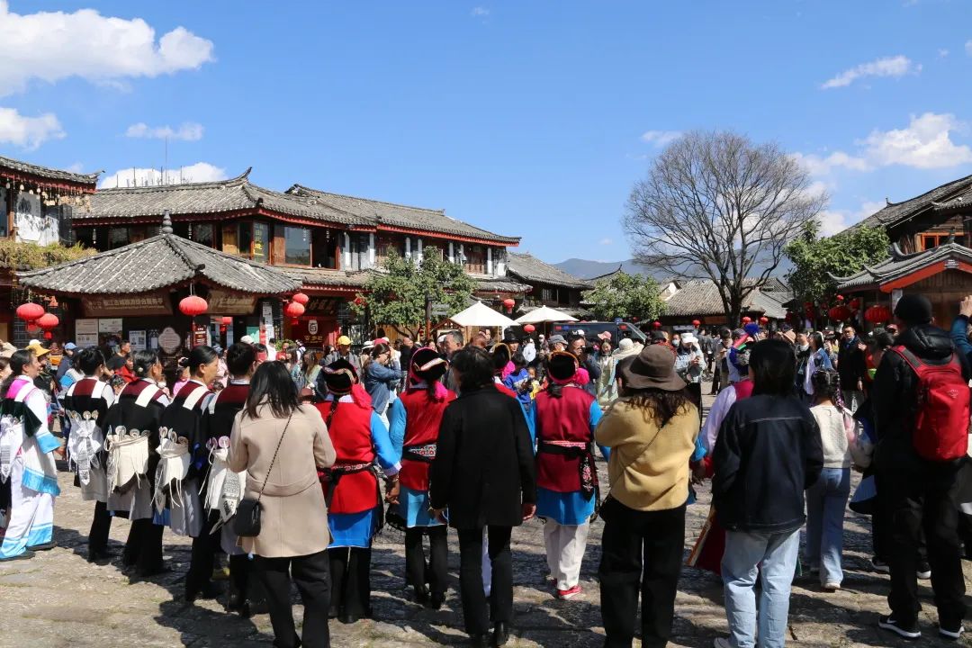 2月28日,“丽江时光”四方街传统生活风貌情境展演继春节期间首场演出之后再次开演。通过情境演出、歌舞、打跳等演绎方式,再现丽江古城传统的日常生活,向游客市民展示古城人家生活面貌,描绘民族团结一家亲的美好画卷。