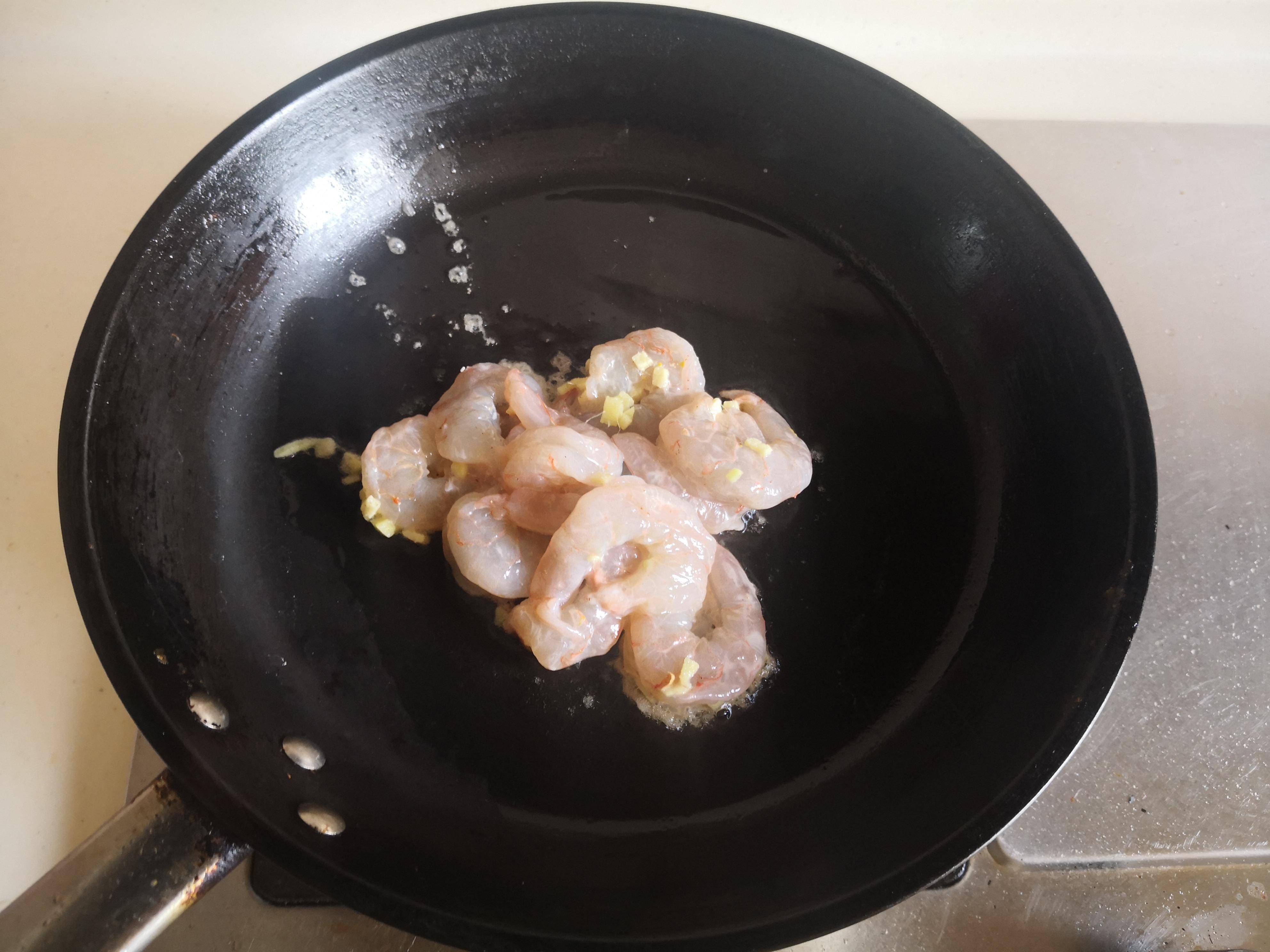 3. 热锅凉油,放入腌制过的虾仁进锅煸炒至变色;