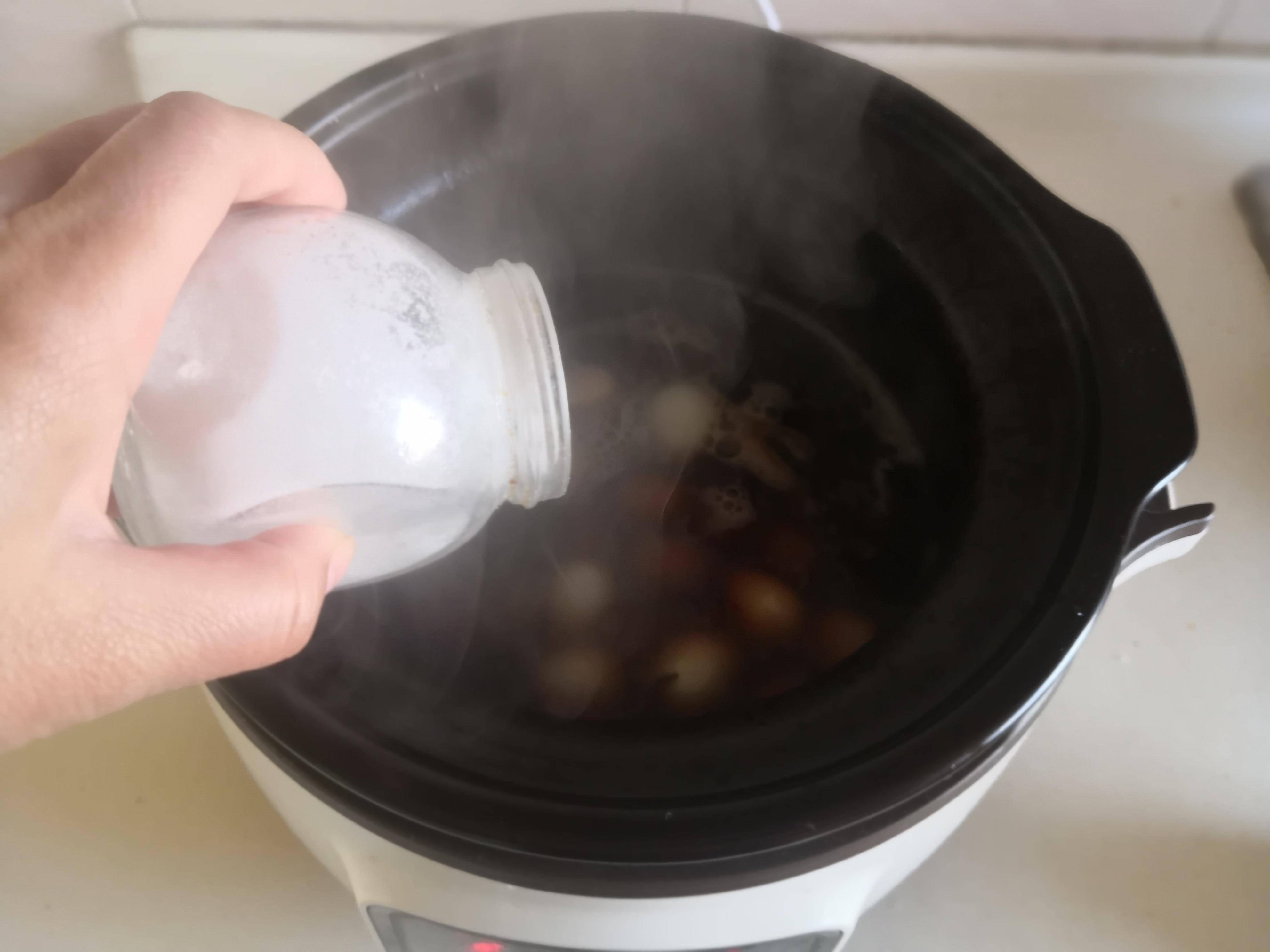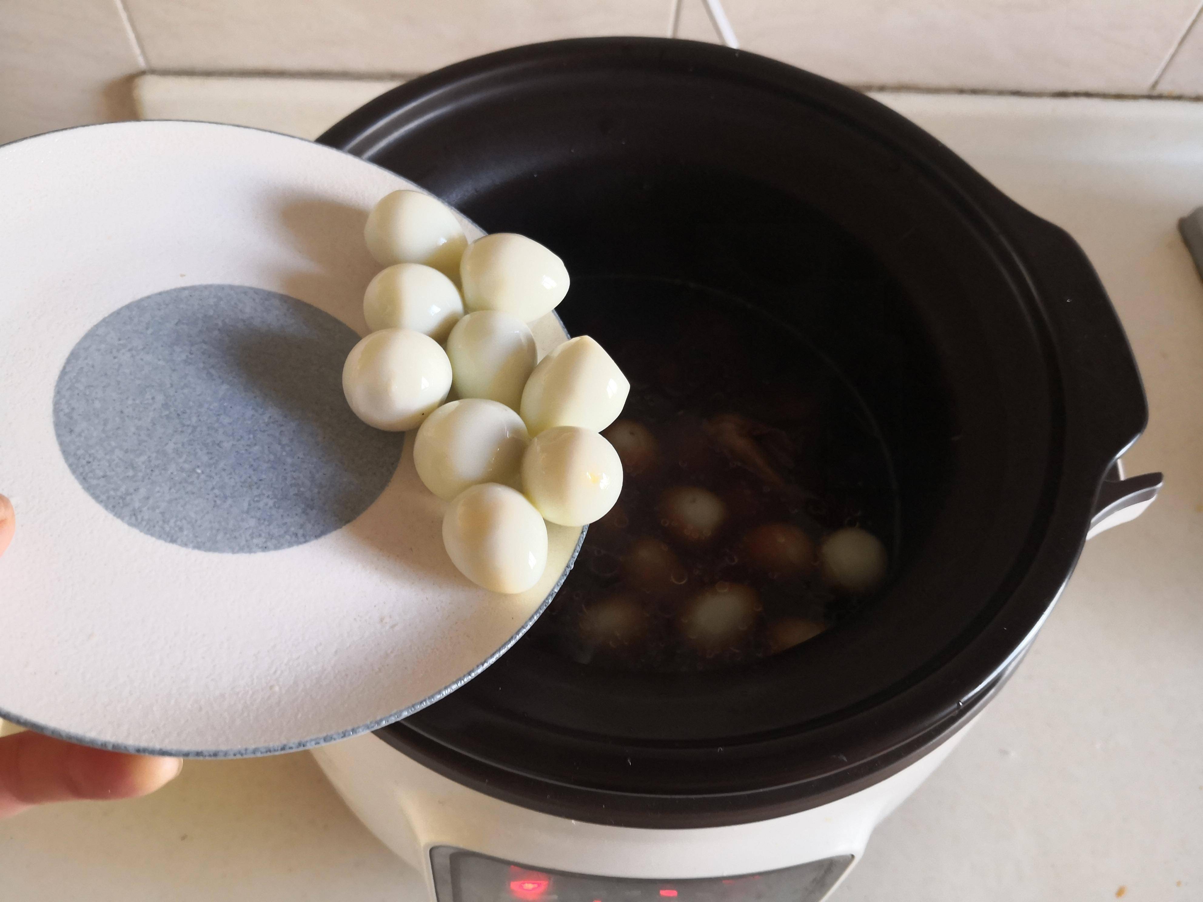 5. 还剩下30分钟时加入煮熟的鹌鹑蛋;