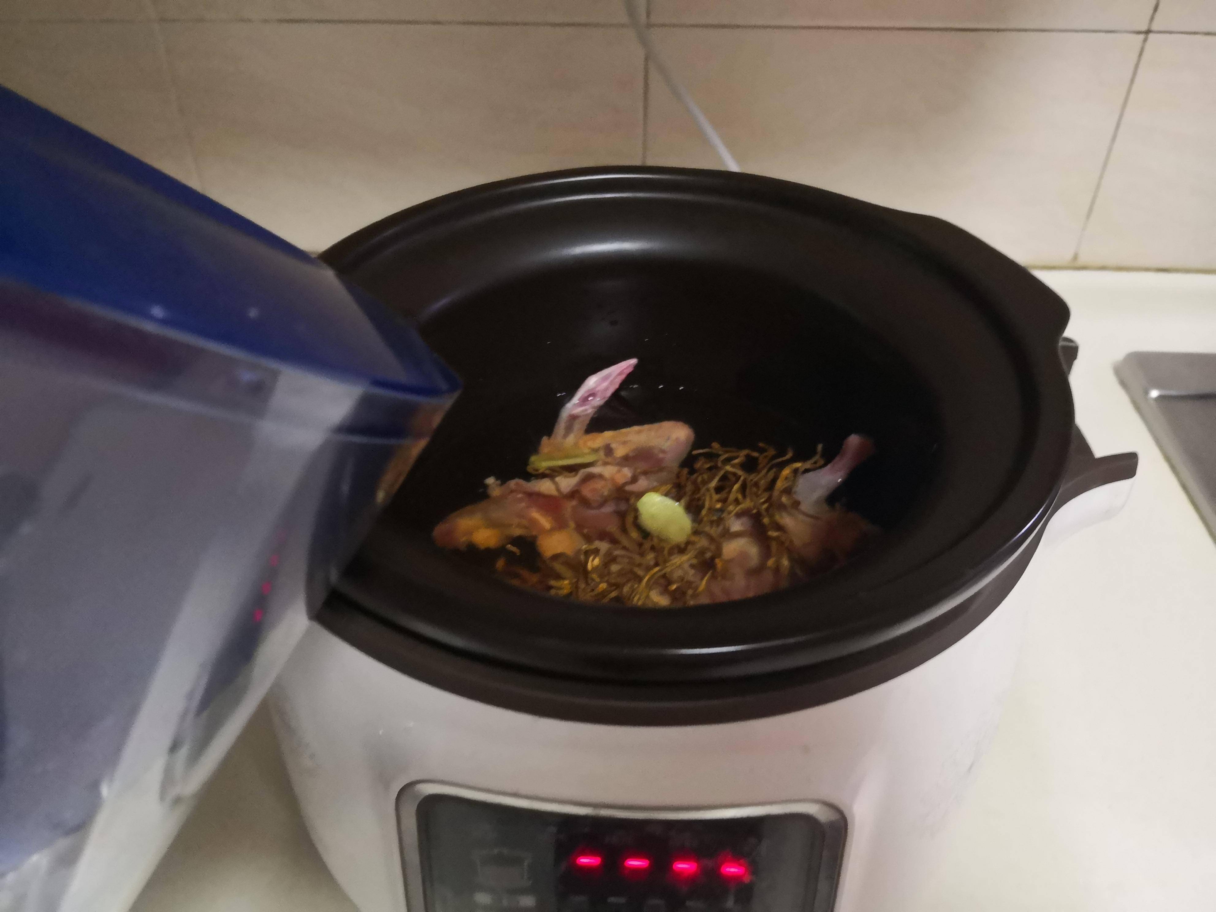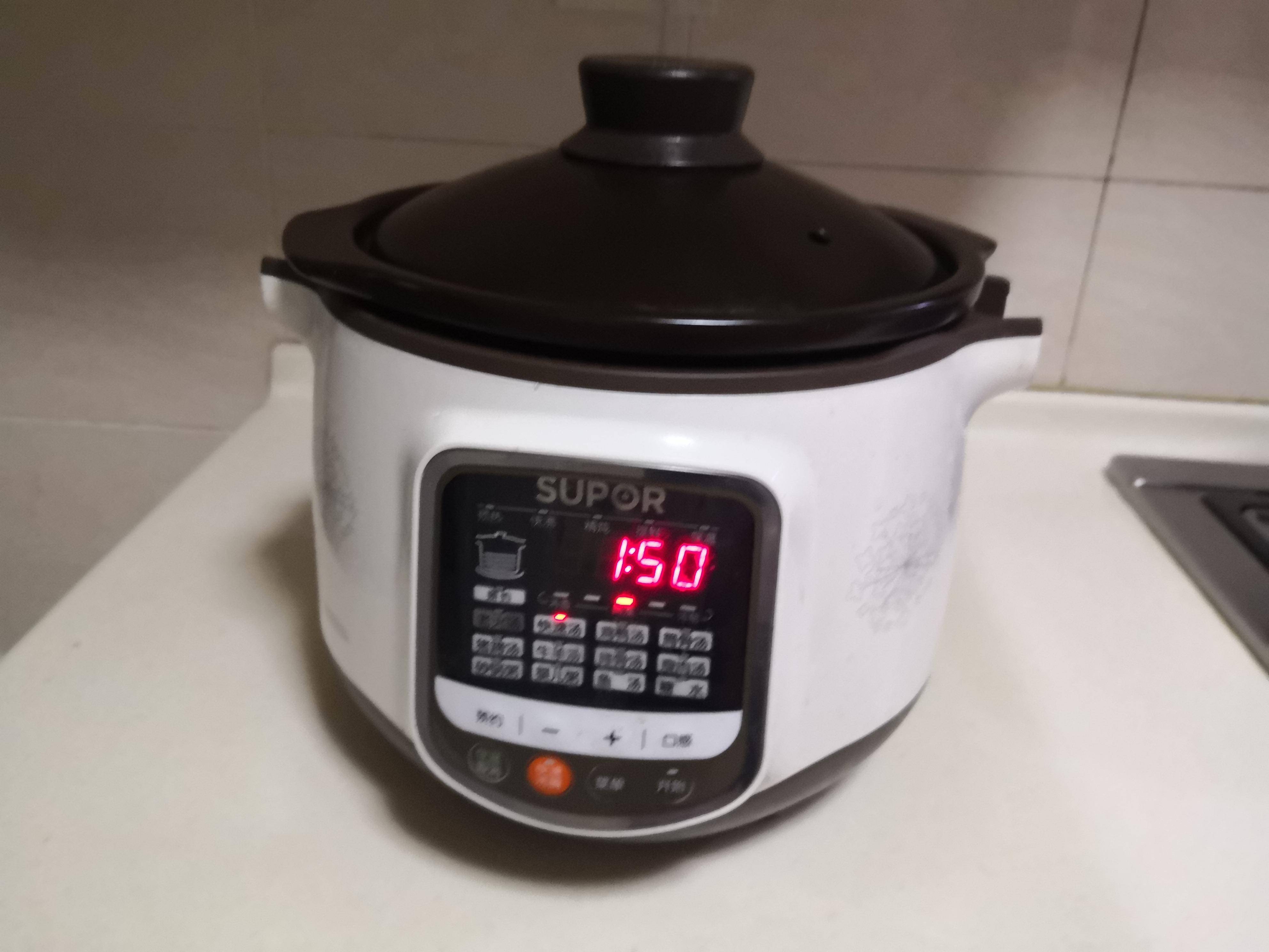 4. 加盖后按下电炖锅上炖煮鸡汤的功能键;