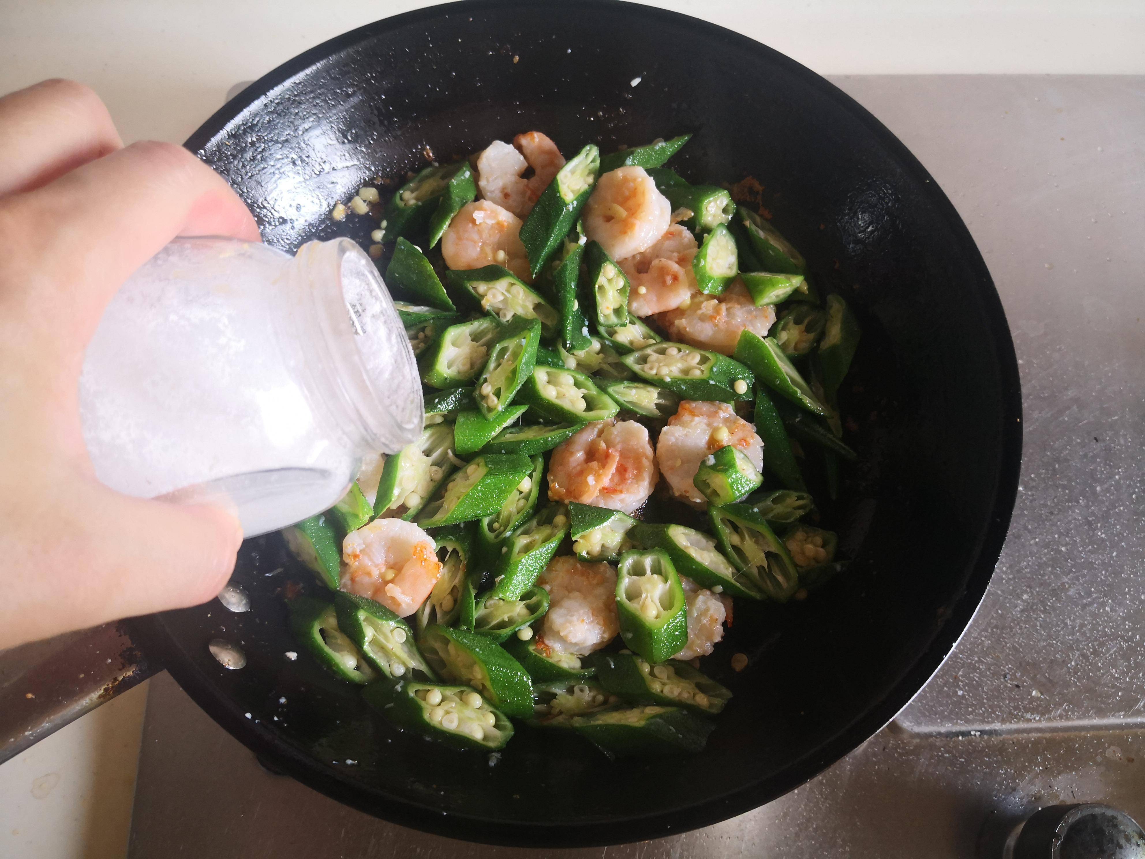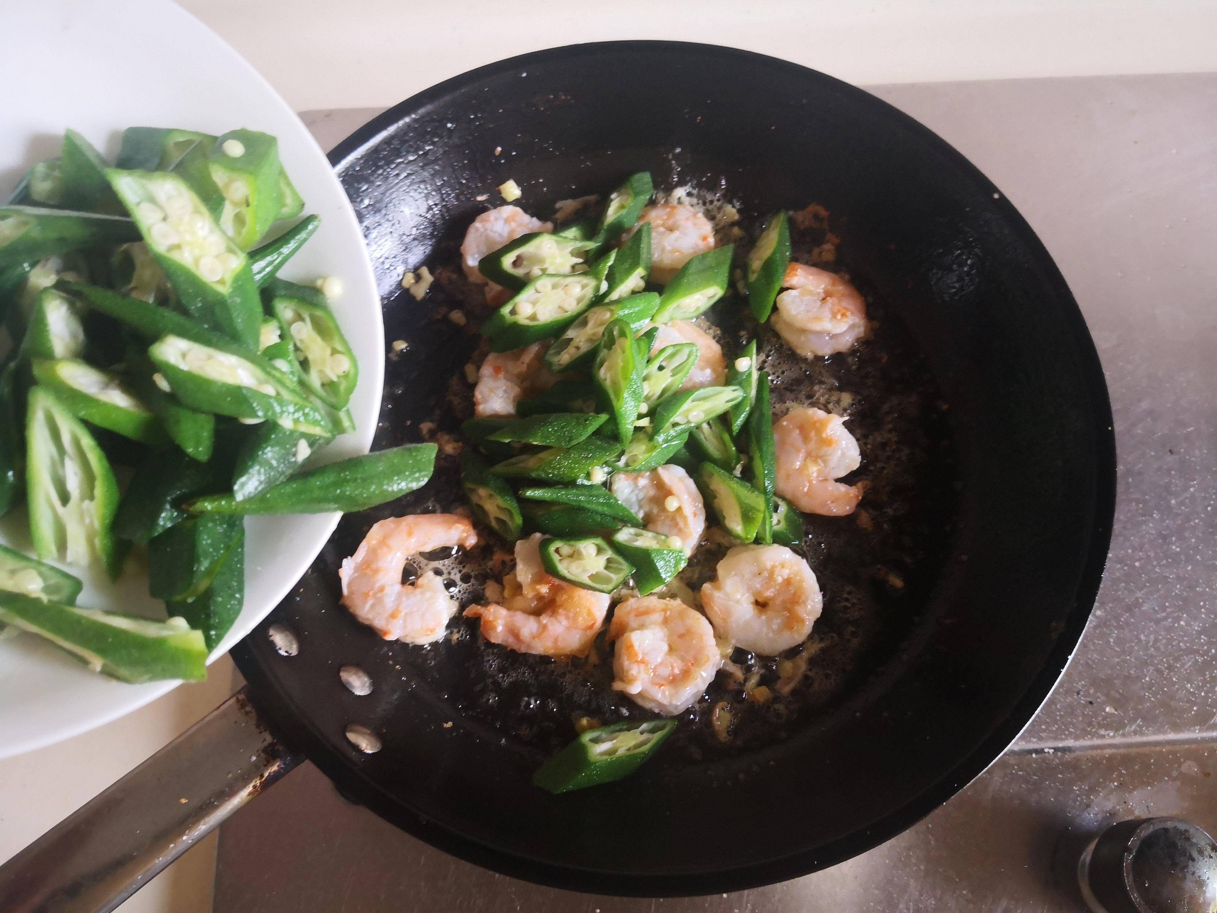 原料: 虾仁 1小碗 秋葵 1盘 淀粉 1小勺 料酒 1小勺 姜末 少许 油盐 适量
