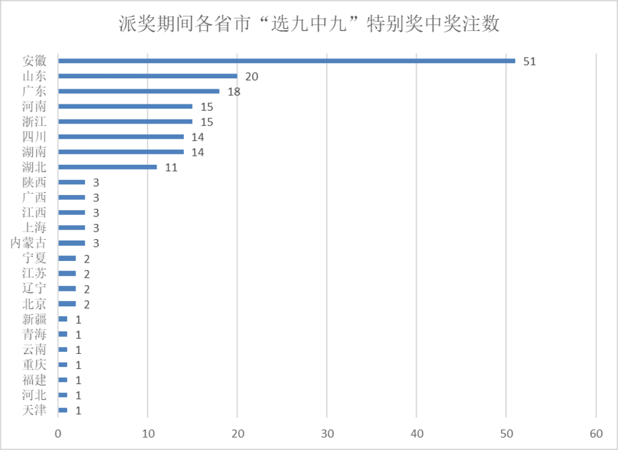 公益是起点,爱心无终点,派奖结束,快乐继续,收获多多 幸运连连。福彩“快乐8”3.68亿大派奖,共计派奖20期,累计销售30.36亿元,筹集公益金约9.1亿元。派奖期间大奖不断,喜讯频传,19注“选十中十”特别奖,花落13家,广东5注、江苏2注、安徽2注、福建1注、江西1注、山东1注、浙江1注、广西1注、四川1注、贵州1注、云南1注、陕西1注、宁夏1注。188注“选九中九”特别奖,幸运纷至,无限欢喜,被山东、广东、河南、浙江等24省获得,其中安徽揽获51注。