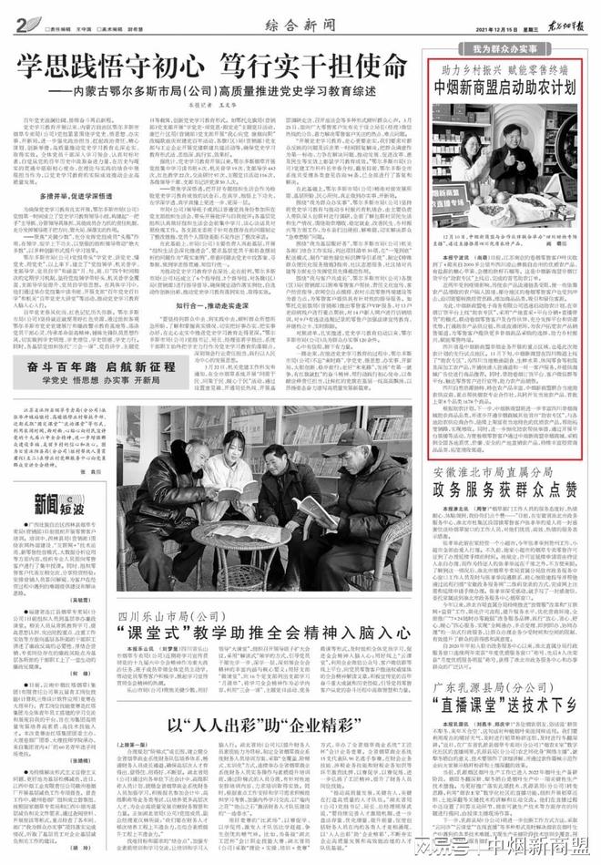 继中烟新商盟特色党建登上《东方烟草报》后,12月15日,中烟新商盟“助农计划”又获得《东方烟草报》新闻版头条报道,再次迎来“高光时刻”。文中充分肯定了中烟新商盟在助力乡村振兴,赋能零售终端方面所做的一系列工作。
