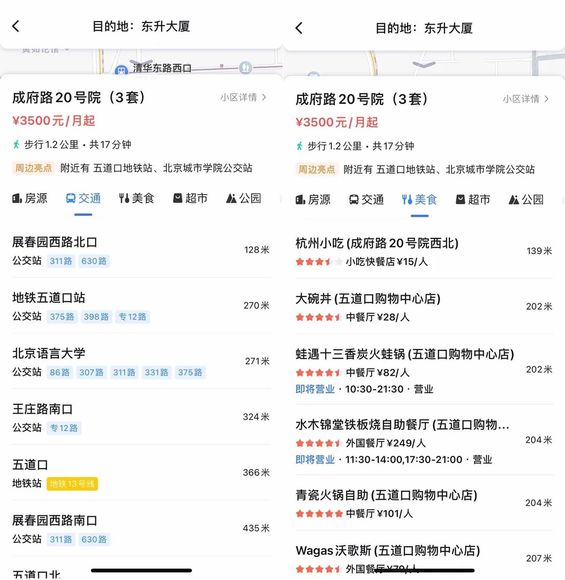 恰好百度地图AI通勤租房功能上线,小徐尝试通过它解决通勤的困扰。她在百度地图中搜索“通勤租房”,输入公司地点“东升大厦”,设置通勤时间“30分钟内”“9点到”出行方式“公共出行为主”租金“4500元内”等租房需求和偏好。百度地图很快智能匹配出适合小徐的推荐住处,比如步行9分钟、房租约3800元的清华园,步行17分钟、房租约3700元的成府路20号院,步行23分钟、房租约3600元的展春园小区等等。最终,小徐综合分析多方面因素后,选择了成府路20号院。小区附近有几个大型商超,还紧邻地铁口,生活便利且出行方便,步行可达大大缩短了通勤时间。和同事们熟悉起来后,大家聊天才发现,很多人也都选择了这附近的小区。
