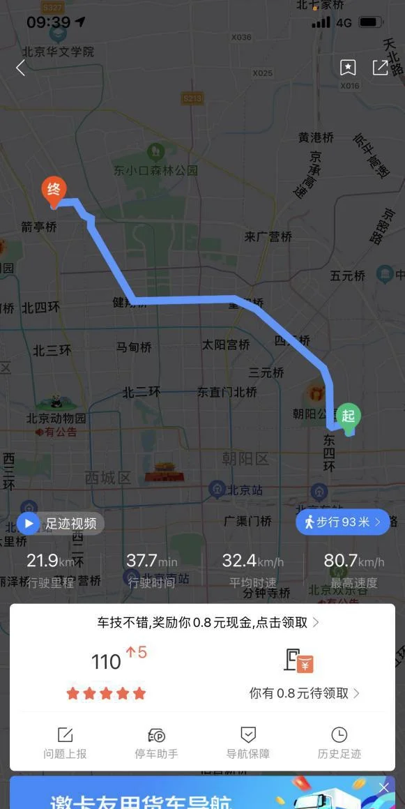 整个行程耗时近38分钟,当天出发的实时路线规划与提前预测的路线、路况基本保持一致。略有不同的是当我们行驶至健翔桥附近时,因为道路拥堵百度地图提醒我们从主路切换到辅路,这项实时拥堵提示功能,为我们节省了很多时间。