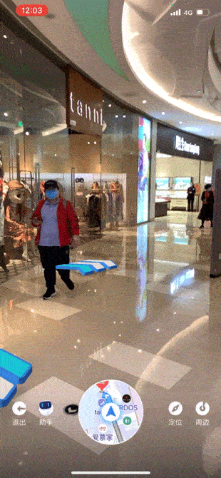 同样的操作之后,它先把我导航到了直梯的位置。由于进入直梯后导航是要关闭的,所以到了6楼,需要重新定位,之后就是一路跟随箭头找到了海底捞。
