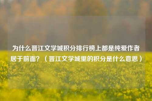 为什么晋江文学城积分排行榜上都是纯爱作者居于前面?(晋江文学城里的积分是什么意思)