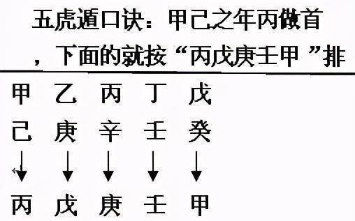 这首歌又叫五虎遁。遁是跑的意思。寅是正月的地支,寅为虎,从正月老虎开始依次赶着往前跑即推算。而且,正月的起点只能是甲寅或丙寅、戊寅、庚寅和壬寅这五个干支,所以叫五虎遁。