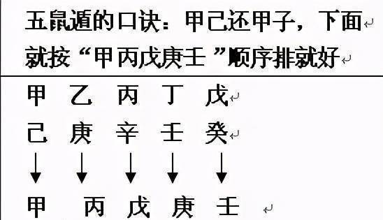 以日干为依据推算时辰干支的歌诀叫五鼠遁,子为老鼠,追着老鼠向前跑,而且起点只能是甲子或丙子、戊子、庚子和壬子,所以叫五子遁。