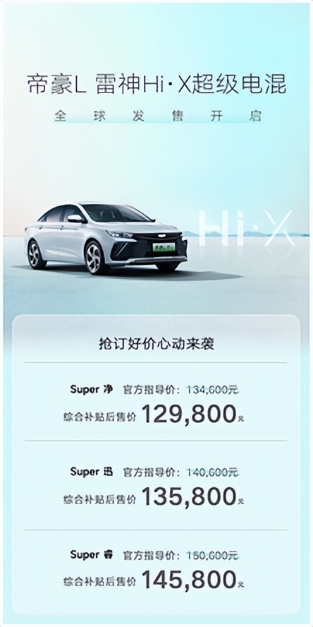 吉利帝豪L雷神Hi·X超级电混全球发售 综合补贴后售12.98-14.58万(吉利帝豪油电混动2021年新款)
