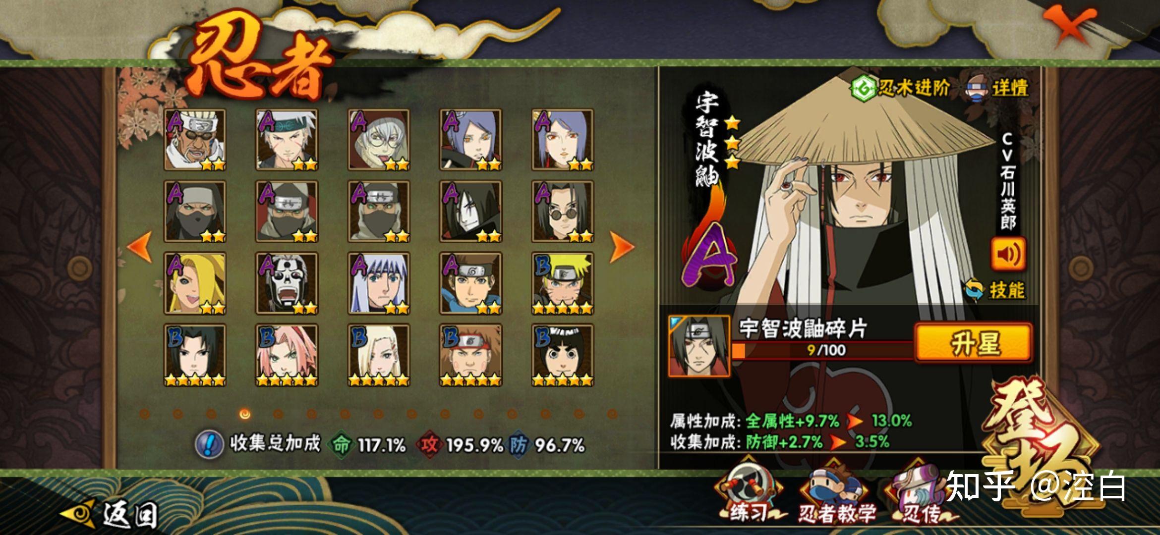 忍者可以根据喜好还有金币条件适当购买,优先收集可以获得称号的忍者 第一个五星A忍大概可以加五万战力,第一个五星S可以加五十万战力,S比较推荐搞五星纲手或者五星三代,看你组织排名选择。