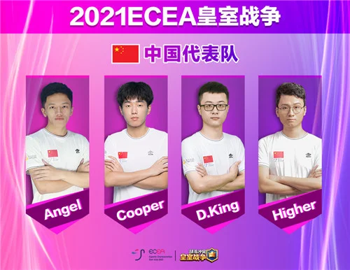 由于为国出征的特殊意义,让此次ECEA皇室战争中国代表队的选拔堪称尽遣高手、万里挑一。最终刘旭峰(Higher)、潘天祺(Cooper)、桑孟超(D.King)、李振(Angel)四名选手将齐心协力、为国出征,韩志强(HZQ)将作为教练排兵布阵、运筹帷幄。团结一致的中国代表队将全力以赴、力争金牌!