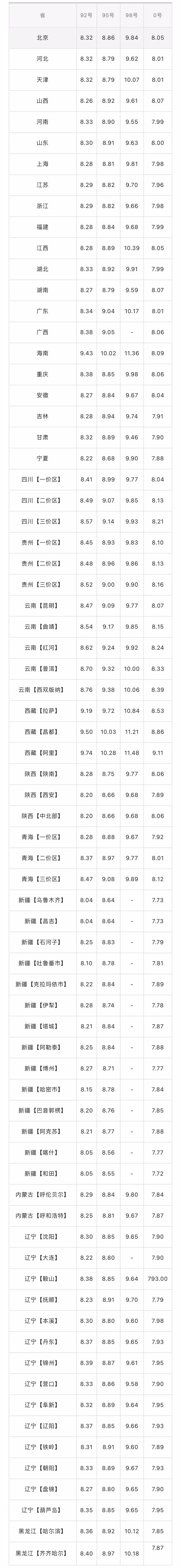 今日油价详情如下: