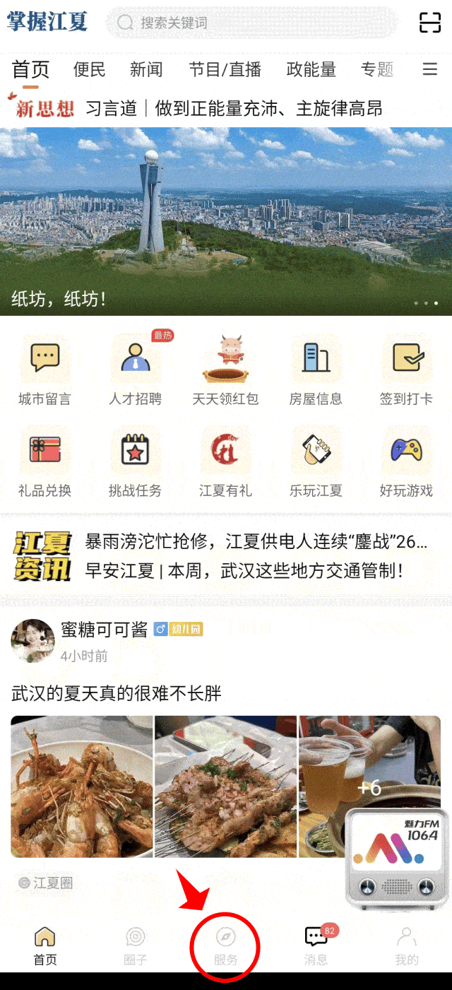打开“掌握江夏”APP,点击底部“服务”、“今日油价”