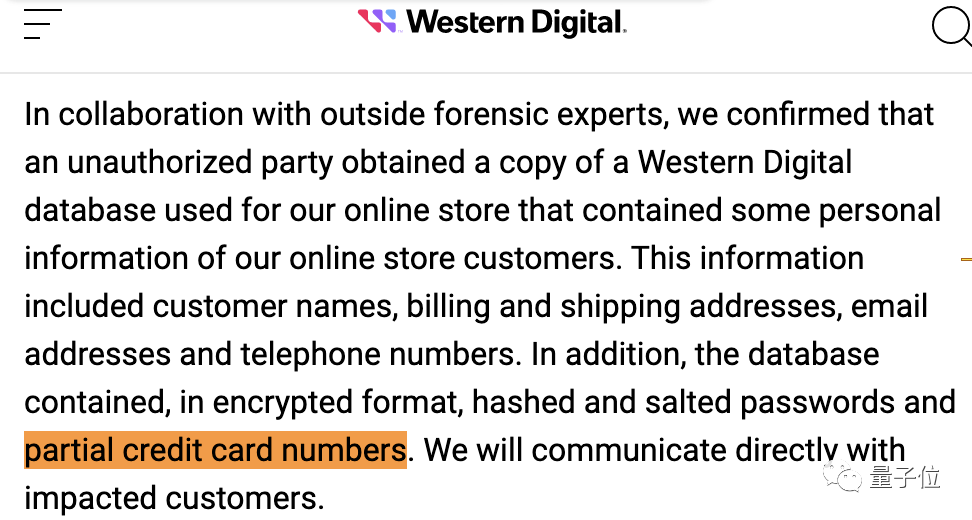 西部数据泄露数据包含信用卡信息