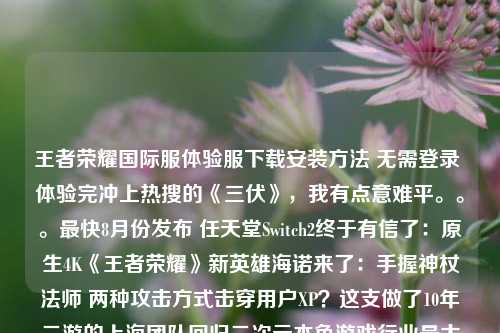王者荣耀国际服体验服下载安装方法 无需登录 体验完冲上热搜的《三伏》,我有点意难平。。。最快8月份发布 任天堂Switch2终于有信了:原生4K《王者荣耀》新英雄海诺来了:手握神杖法师 两种攻击方式击穿用户XP?这支做了10年二游的上海团队回归二次元本色游戏行业最大的痛点,真的是“不够真诚”吗?《遗迹2》首周销量突破100万份,销售速度比初代快了8倍《原子之心》首个 DLC“湮灭本能” 今天正式发布 曝光上市预告片-王者荣耀国际服试玩版