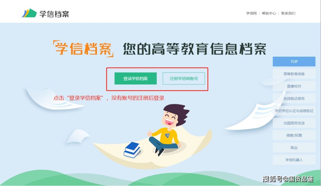 3.登录学信档案,没有账号的须点击“注册学信网账号”注册后登录。