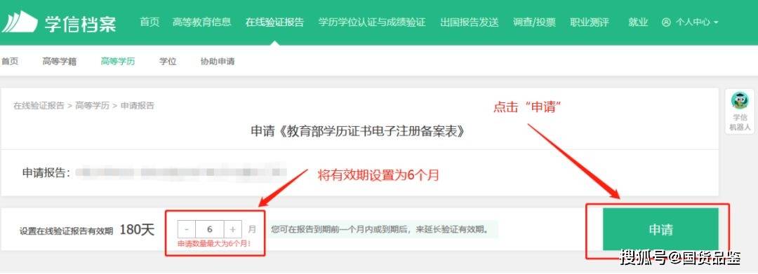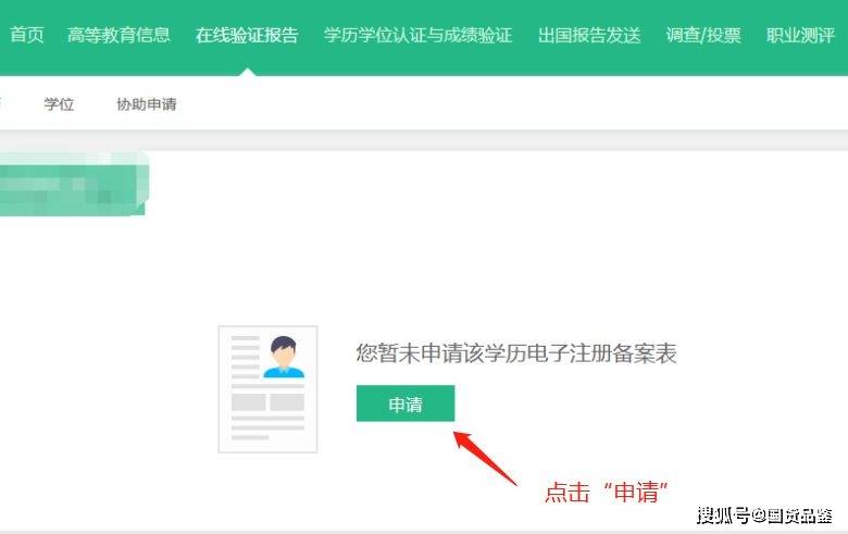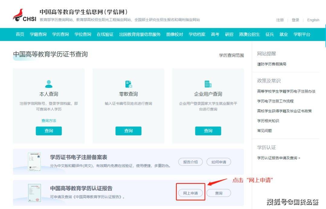 3.点击“中国高等教育学历认证报告”中的“网上申请”按钮。