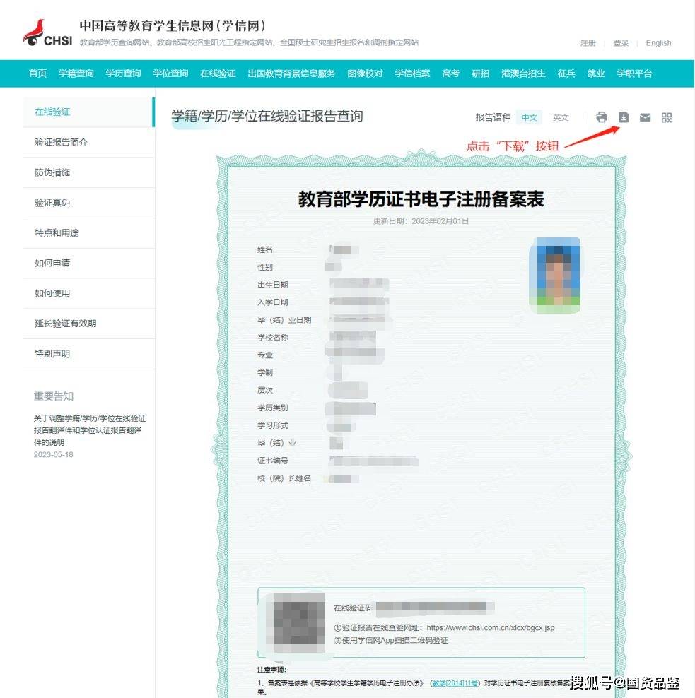 注:国内学位证书仅可申请并出具一次书面认证报告,不再重复受理。认证报告丢失或需获取多份报告的,可通过认证报告查询页面下载打印电子版报告。