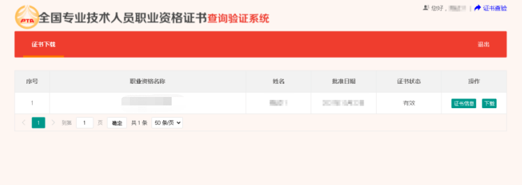第四步:持证人员首次登录系统时,需要认真阅读服务须知,点击[同意]按钮后,即可进入证书查看和下载页面。