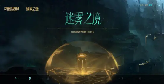 而之前联盟发出的一个长期活动“迷雾之境”,到现在也才解了三章,这个图中的背景和新游戏的宣传视频中非常相似,小编猜测这个活动最后结束的时候,也就是秘境解除的时候可能是《破败王者:英雄联盟传》上线的时候。