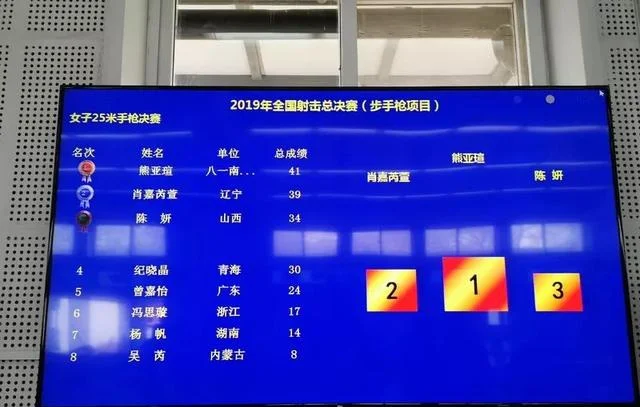本次比赛,卫冕冠军熊亚瑄以591环资格赛第一的成绩进入决赛。按照奥运会新规则,决赛阶段分一场半决赛和两场奖牌争夺赛。经过5组各5发子弹的半决赛较量之后,熊亚瑄与辽宁选手肖嘉芮萱进入到冠亚军争夺赛。