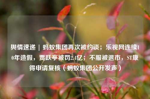 舆情速递 | 蚂蚁集团再次被约谈;乐视网连续10年造假,贾跃亭被罚2.4亿;不服被退市,ST康得申请复核(蚂蚁集团公开发声)