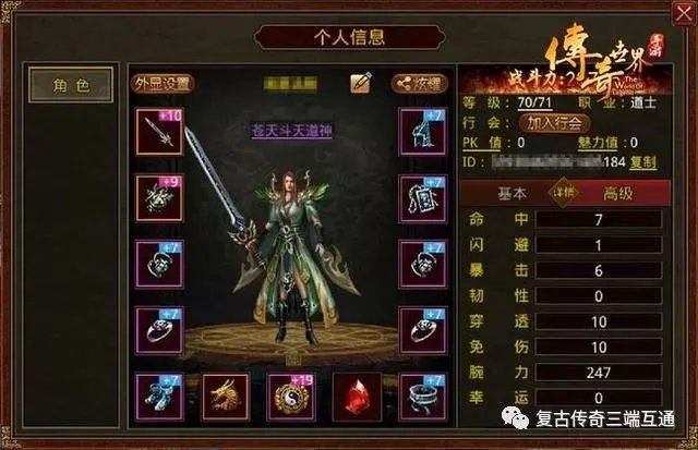 勇猛的战士,飘逸的法师,以及灵动的道士,三大职业构建了传世大陆的根基,铁三角组合从此深入人心,而复古区仅开放了战法道三职业。