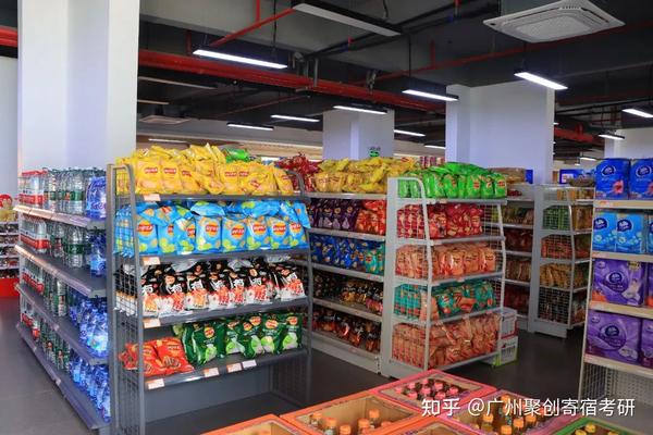 学生公寓区附近有便利的超市、奶茶店、餐厅、水果店、打印店和快递收发点。