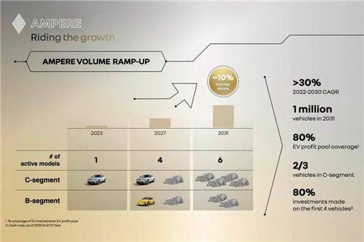 Ampere在证券交易所上市将使雷诺能够通过出售公司的部分股份来筹集大量资金,以继续对其电动车进行现代化改造。这一战略最积极的部分(至少对法国人来说)是,如果内燃机车型代表了过去,那么电动车型则指向未来,这一细分市场将在欧洲、北美和中国等市场增长。