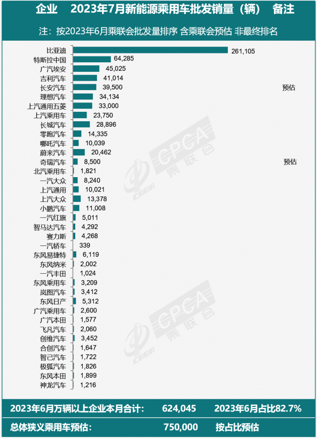 近日,乘联会发布了“7月国内车企新能源乘用车排名”。榜单没有太大变化,比亚迪仍然高居榜首,批发销量高达261105辆。特斯拉仍然排名第二,批发销量64285辆。虽说数据还算亮眼,排名也没有发生变化,但其实环比上月下滑了31.4%。